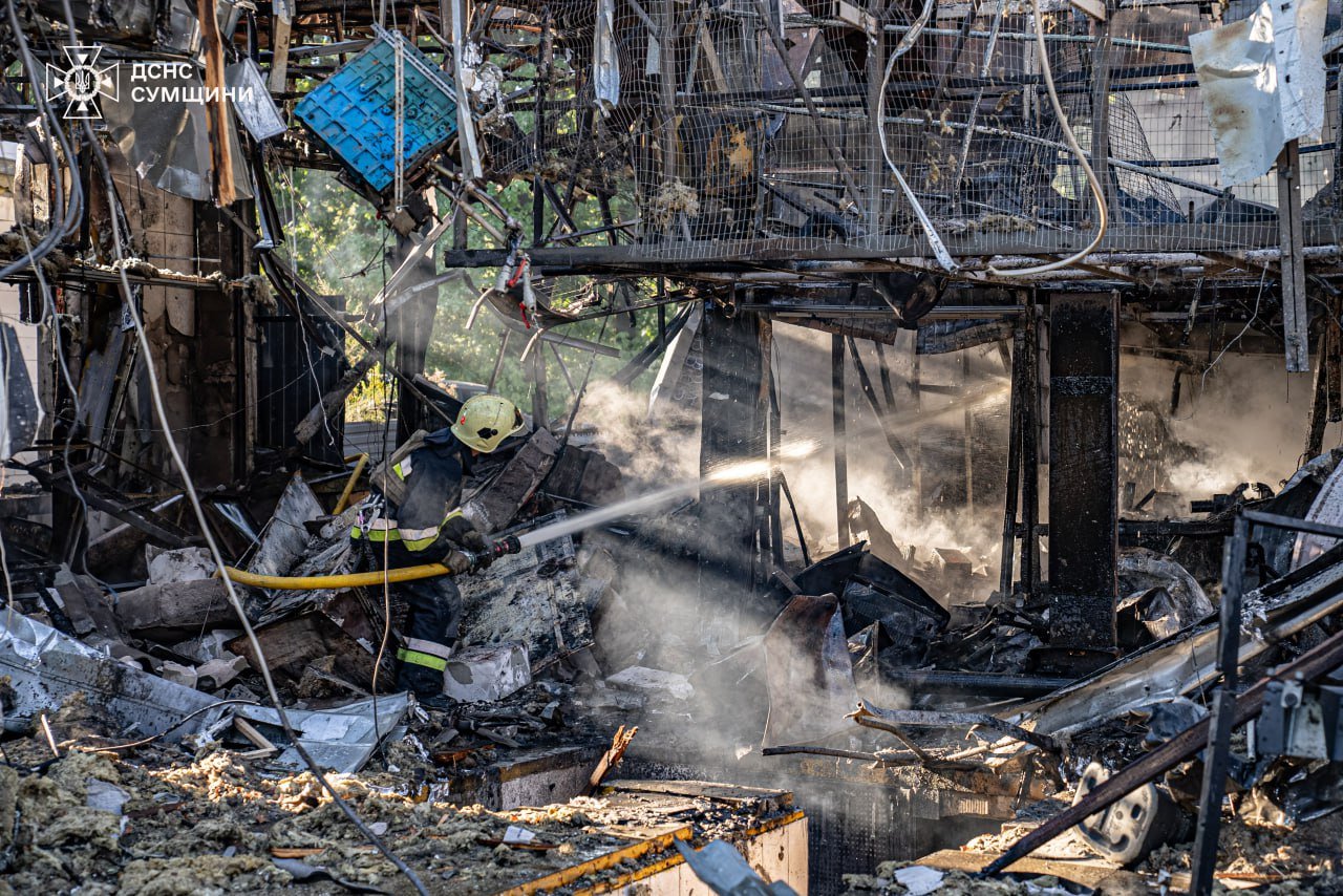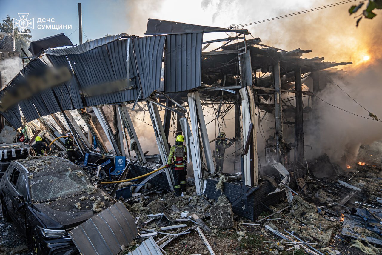 Вранці 12 вересня ворожі БпЛА знову атакували м. Суми. Загорілася нежитлова будівля на значній площі, а також цивільні автомобілі.