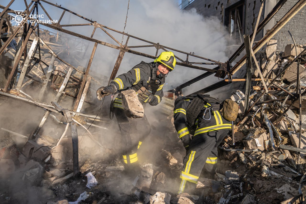 Ліквідація наслідків удару здійснювалася одночасно за кількома напрямками: гасіння пожежі, розбір завалів та пошук постраждалих.