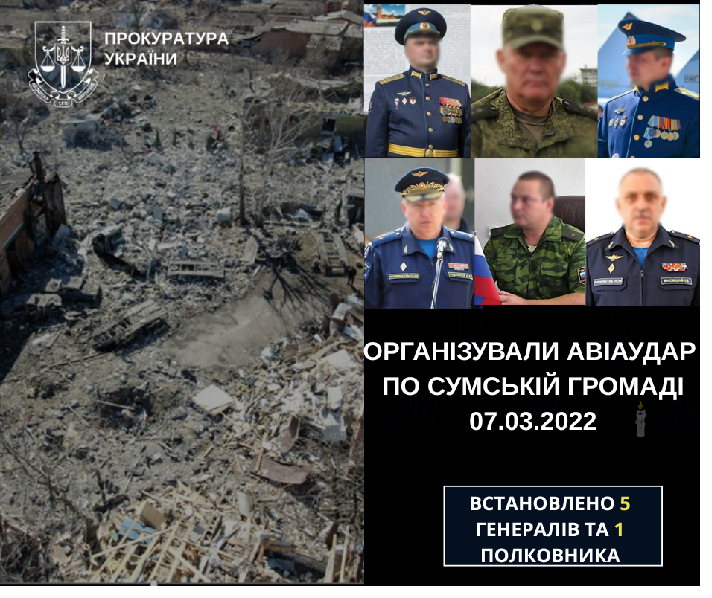 За даними слідства, саме за наказами вищезазначених осіб упродовж 5-10 березня 2022 року пілоти країни-агресора скинули близько 20 авіабомб ФАБ-500 на мирних жителів м. Суми та Сумського району.