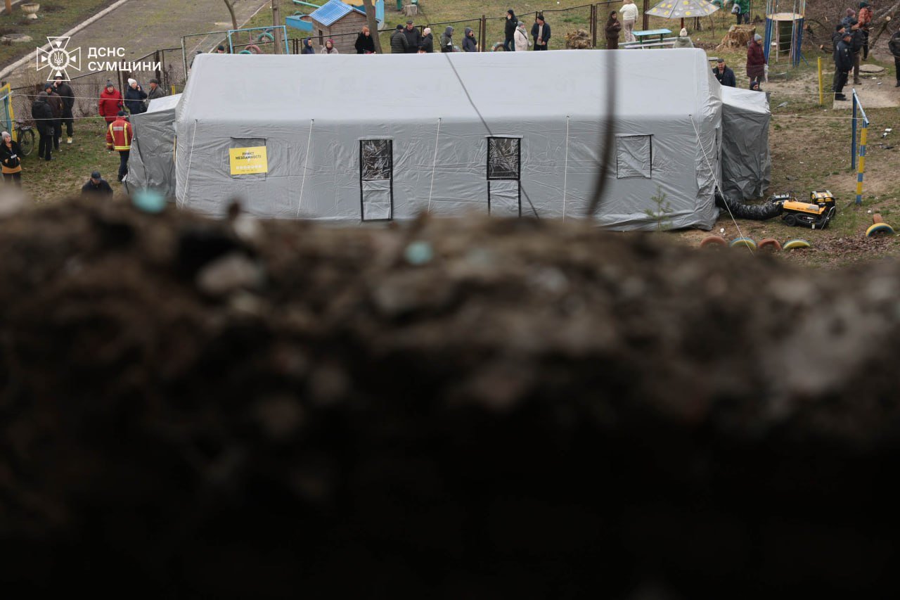 Від самого ранку співробітники ДСНС оперативно розгорнули мобільний пункт незламності, де місцеві жителі можуть зігрітися та зарядити гаджети. У пункті працює психолог ДСНС, який надає підтримку громадянам, що пережили стрес.