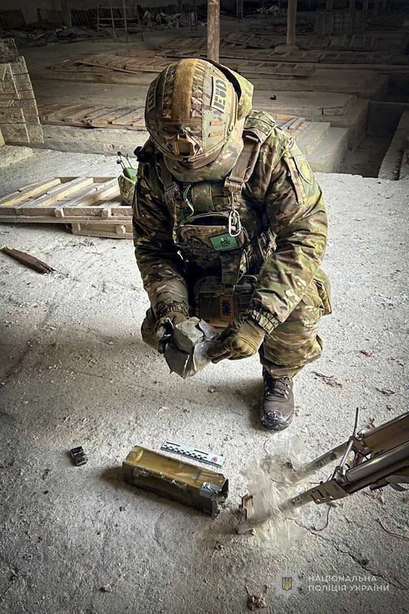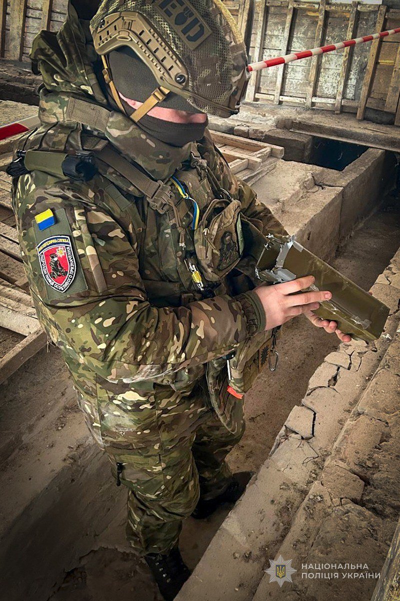 Провівши огляд уламків російського безпілотного літального апарату, вибухотехніки поліції встановили, що його бойова частина складалася з двох протитанкових мін ПТМ-3, які частково зруйнувалися під час падіння.