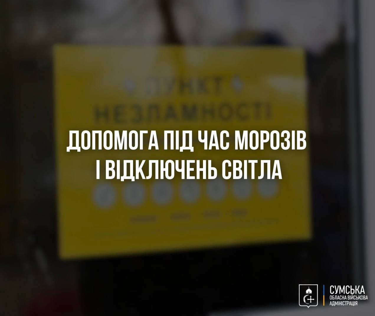 На Сумщині працює розгалужена мережа пунктів незламності та пунктів обігріву.