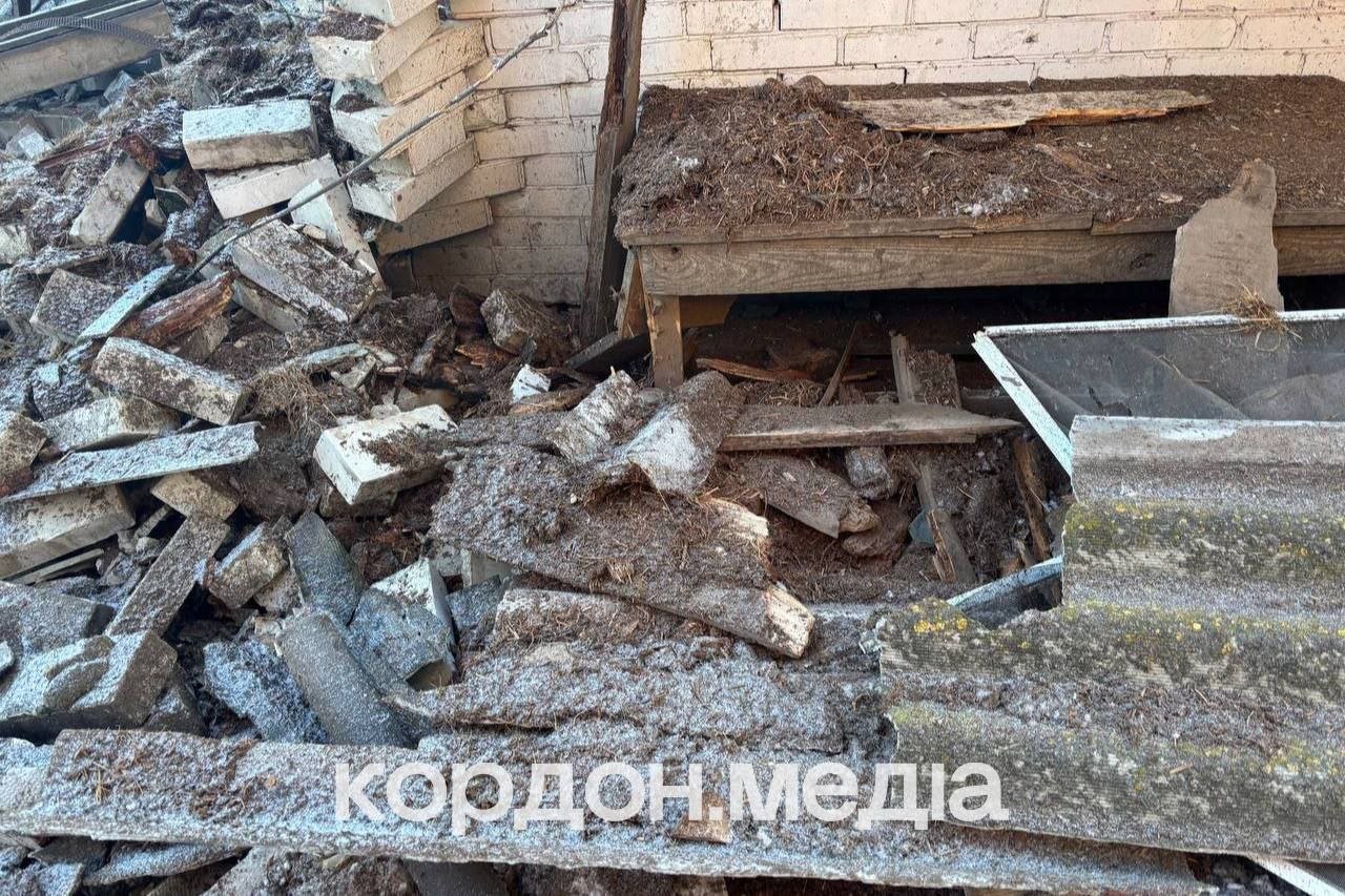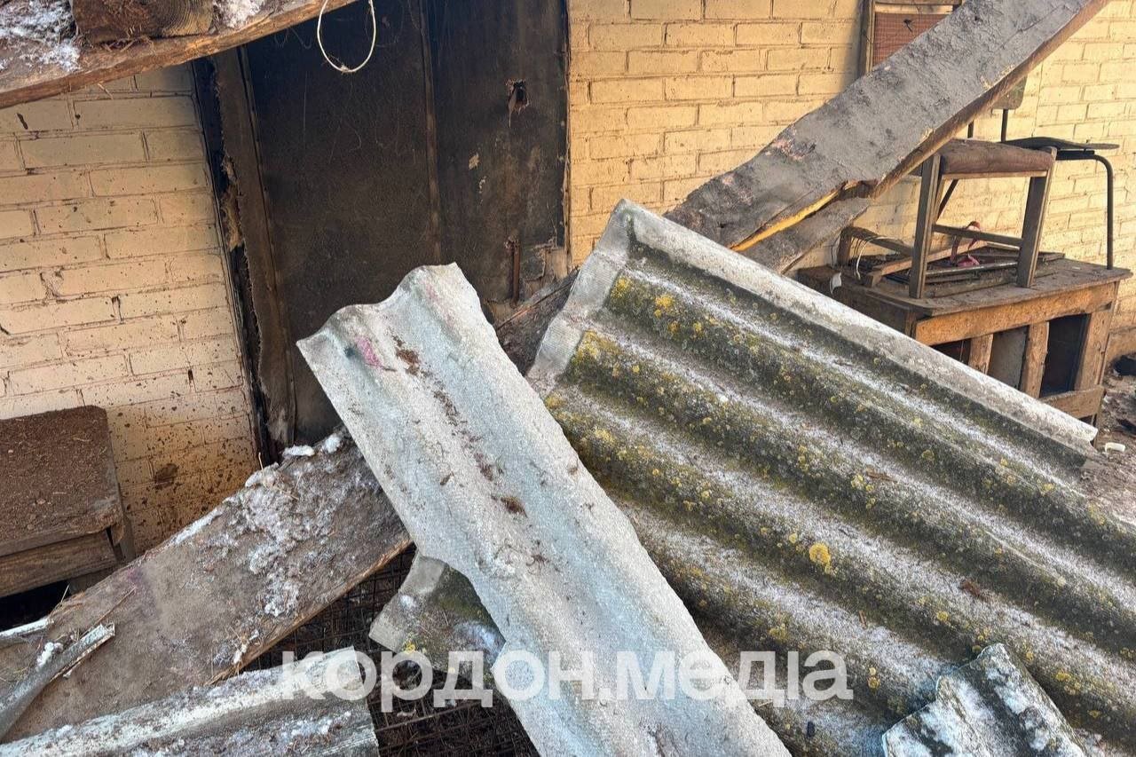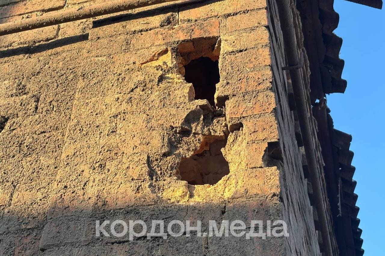 Через приліт у будинку вибиті вікна, уламки пробили цегляні стіни. Також сильно пошкоджений сарай — там немає стіни, — дізналися воєнкори Кордон.Медіа на місці влучання.
