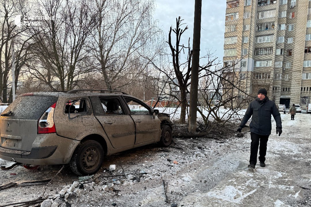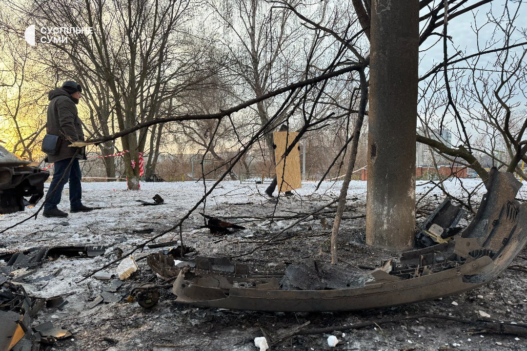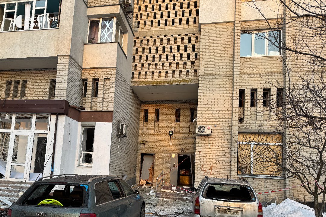 5 лютого близько 2:30 російський дрон типу “Герань-2” влучив у двір багатоквартирного будинку в Зарічному районі Сум.