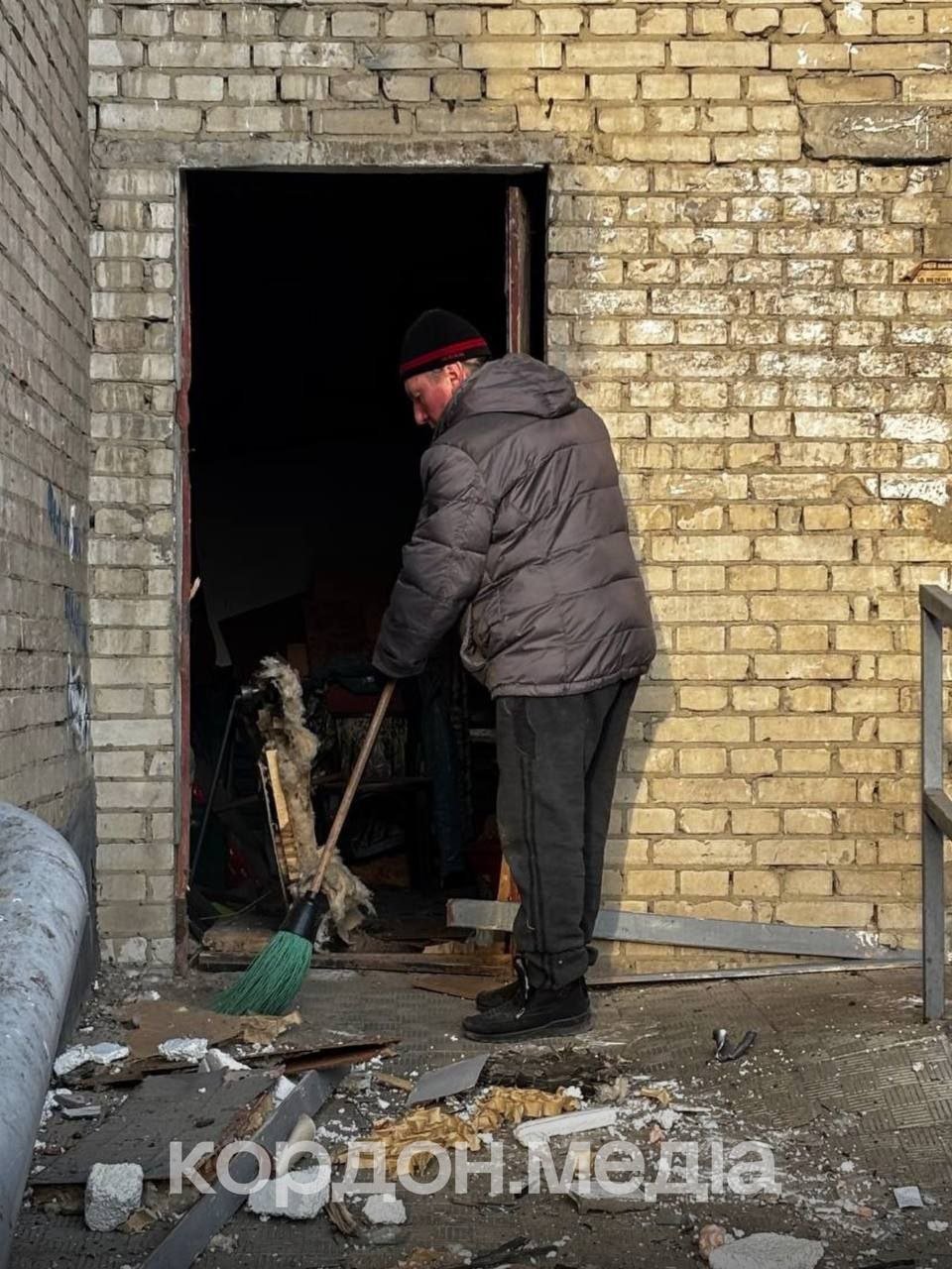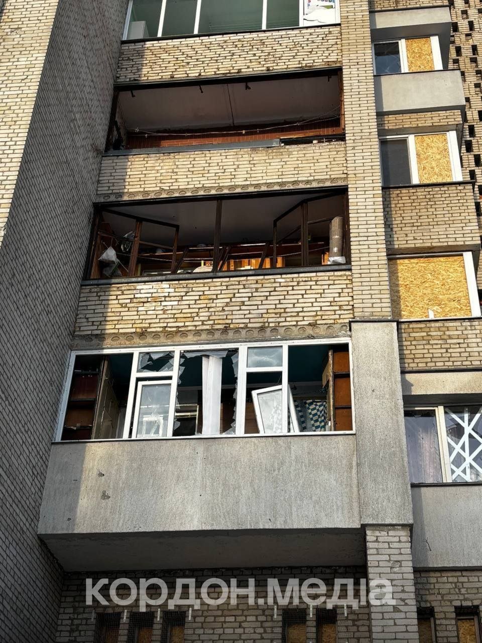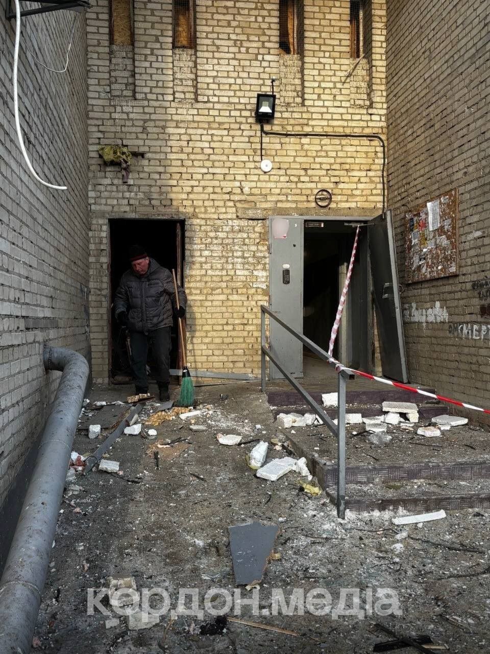 Біля пошкодженої багатоповерхівки вже працюють штаб з ліквідації наслідків влучання та пункт обігріву. Жителям цього будинку допомагають забивати вікна, — дізналися воєнкори Кордон.Медіа на місці події.