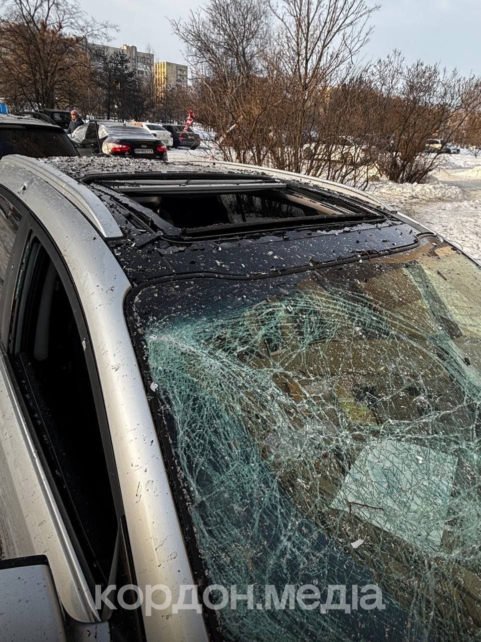 Внаслідок атаки вибиті понад 50 вікон у багатоповерхівці та пошкоджені автомобілі. За попередніми даними, поранених або загиблих немає.