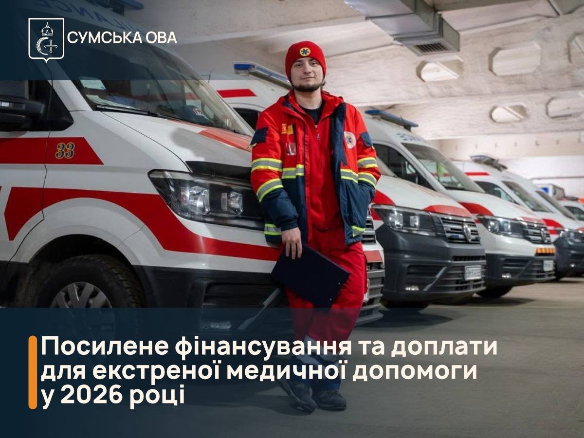 Фінансування екстреної медичної допомоги на Сумщині зросло до 443,8 млн грн – це на 36% більше, ніж торік.