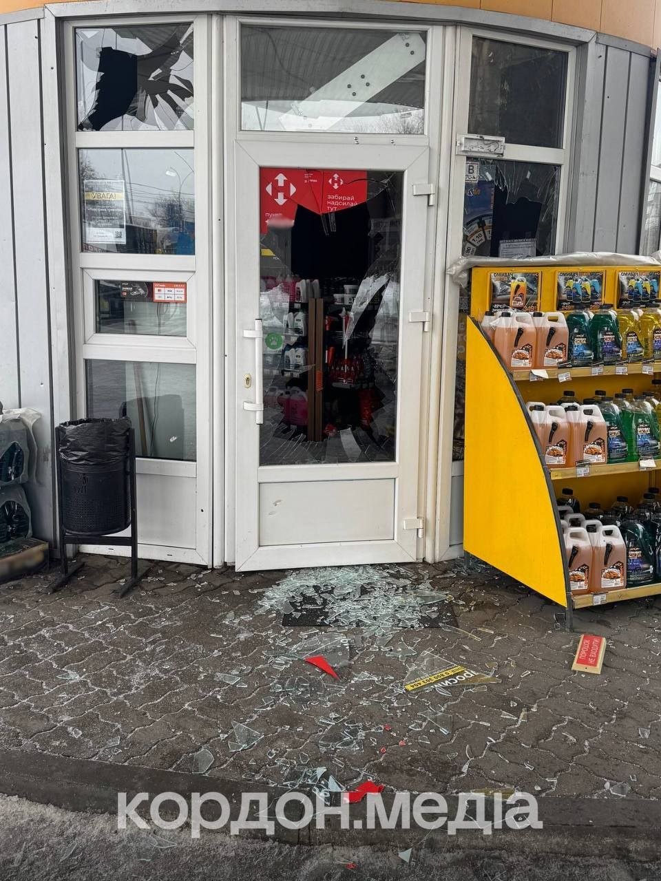 російський БпЛА вдарив по заправці. Як наслідок — там пошкоджена колонка, у магазині вибиті вікна. Також вибухова хвиля зачепила автівку, — дізналися воєнкори Кордон.Медіа на місці події.