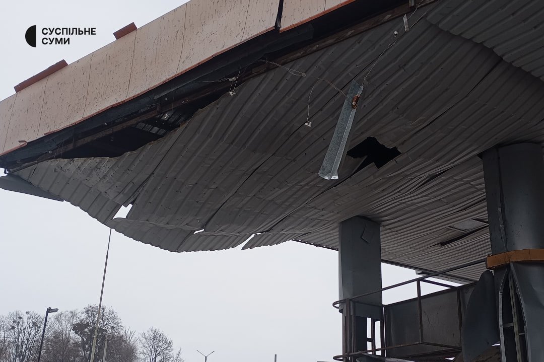 На фото наслідки влучання одного з російських дронів по Сумах вранці 26 лютого
