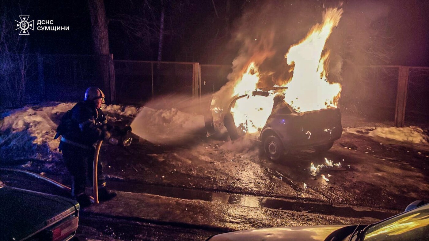 9 березня о 20:32, на лінію екстреного виклику 101, надійшло повідомлення про загоряння автомобіля по вул. Польська в м. Суми. На місце події було направлено відділення чергового караулу 3 – ї державної пожежно – рятувальної частини.