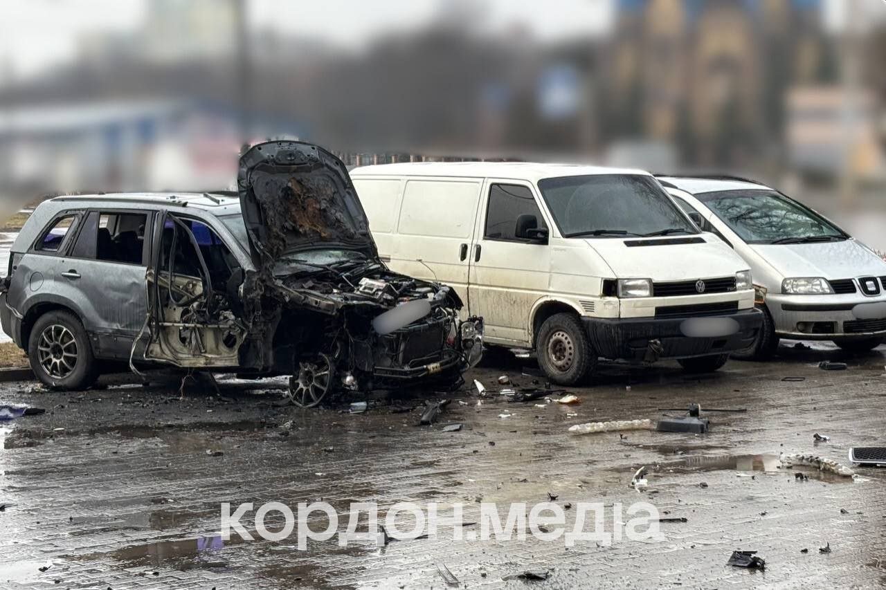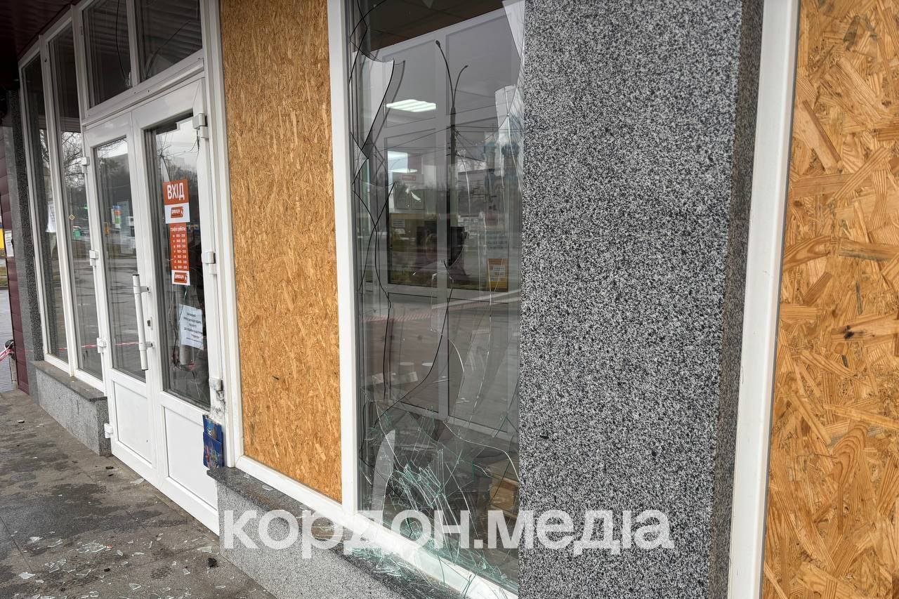 На місці прильоту пошкоджені щонайменше шість автівок. Також у торговому центрі вилетіли вікна.
