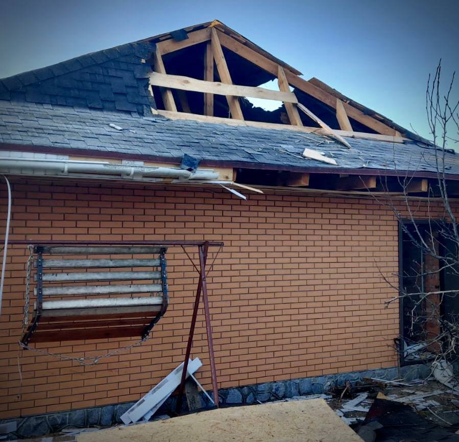 Внаслідок удару зруйновано дах житлового будинку, вибуховою хвилею також пошкоджено вікна в будинку.