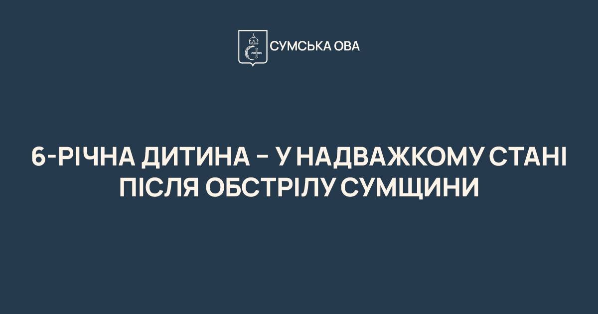 У надважкому стані залишається 6-річна дівчинка, поранена внаслідок російського обстрілу на Сумщині