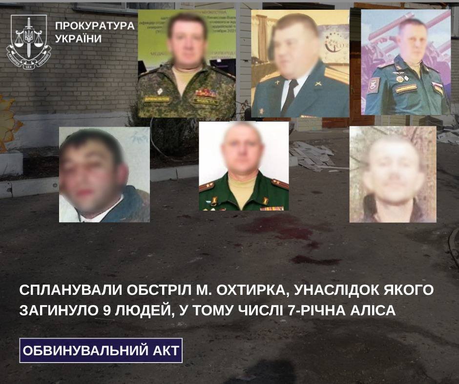 Спланували обстріл м. Охтирка, унаслідок якого загинуло 9 людей, у тому числі 7-річна Аліса, – заочно судитимуть 6 офіцерів командного складу зсрф