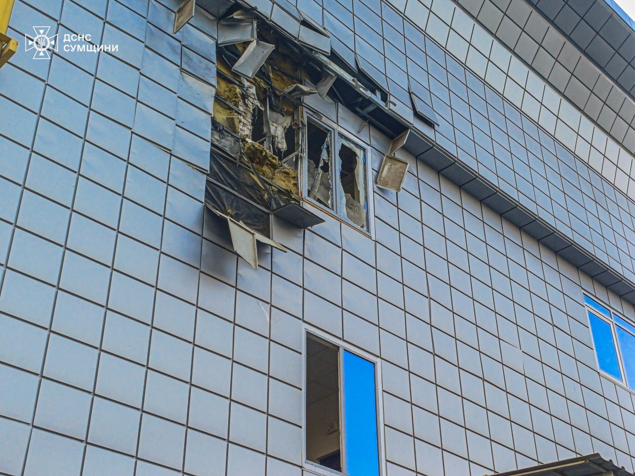 Ударний безпілотник влучив в один із торговельних центрів у центральній частині міста Суми. Внаслідок удару пошкоджено будівлю, вибито вікна.