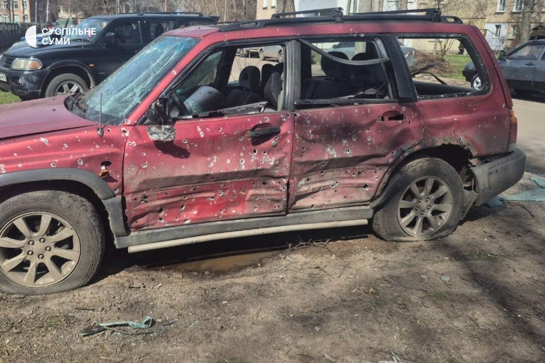 5 квітня після 18:00 рф атакувала місто БпЛА. Безпілотник влучив у кількох метрах від припаркованого авто в районі однієї з лікарень Сум.