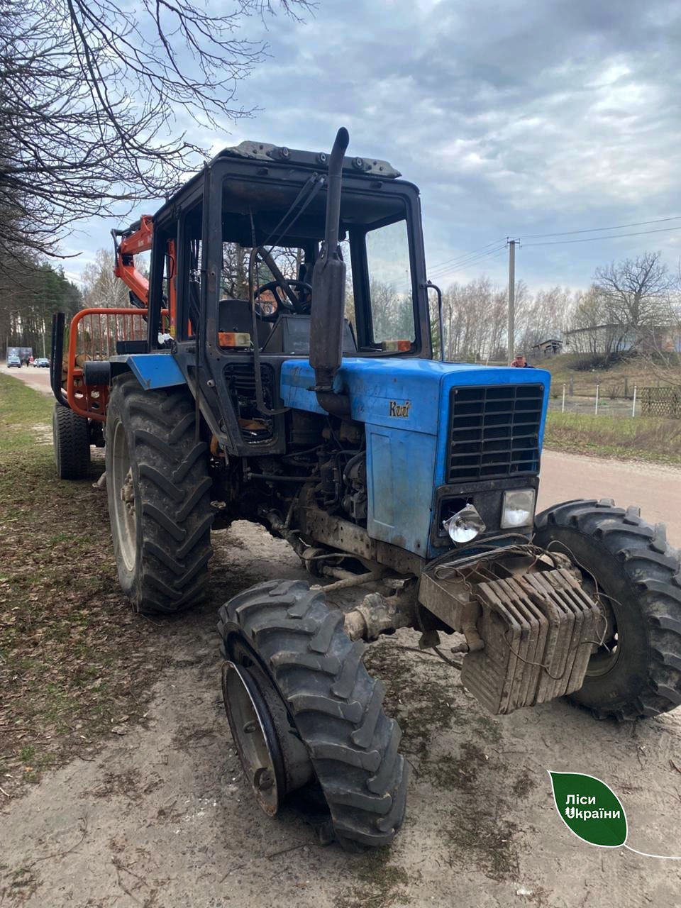 Ударом пошкодило трактор: розбило скло в кабіні та пошкодило переднє колесо. Попри це, чоловіки змогли самі повернутися до лісництва на пошкодженій техніці.