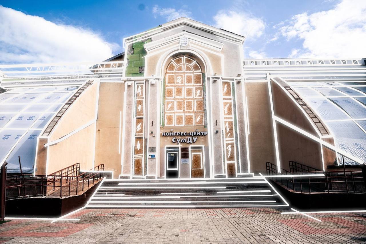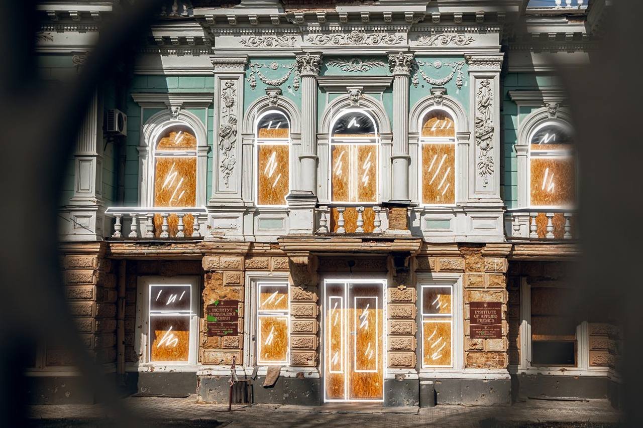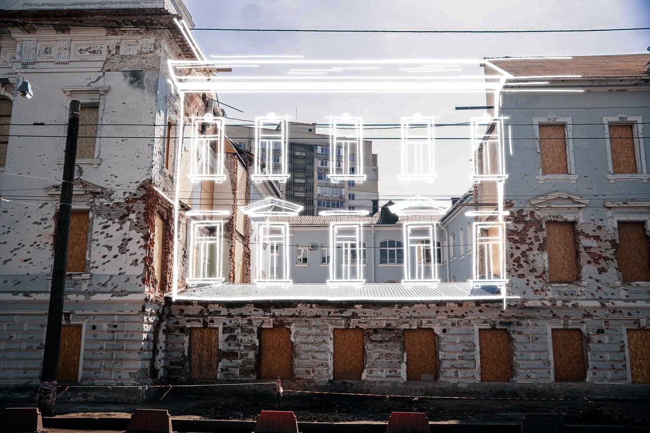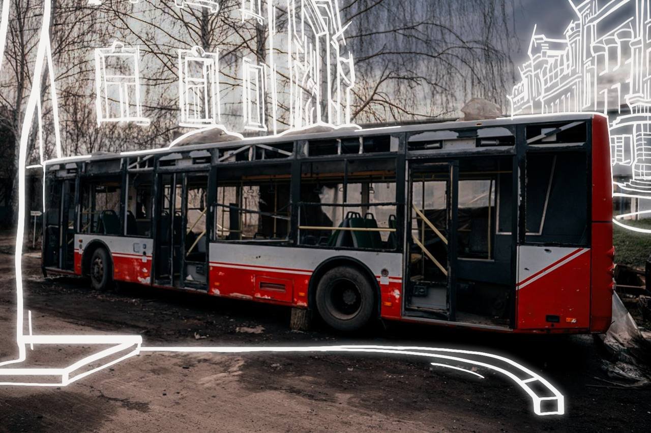 Середмістя Сум, пошрамоване ракетами, досі нагадує про той день. Ці місця назавжди залишаться в нашій памʼяті. На фото Кордон.Медіа відтворили їх такими, якими вони були до обстрілу.