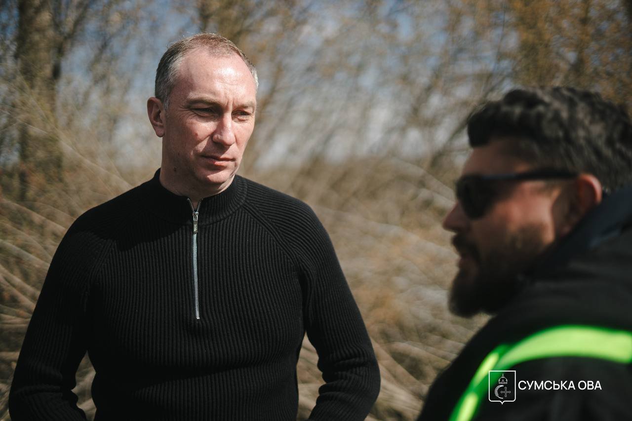«Оглянув хід робіт на одній із доріг у напрямку з Сум до Києва. Наразі дорожники проводять ліквідацію пошкоджень на ділянці протяжністю 7 км.