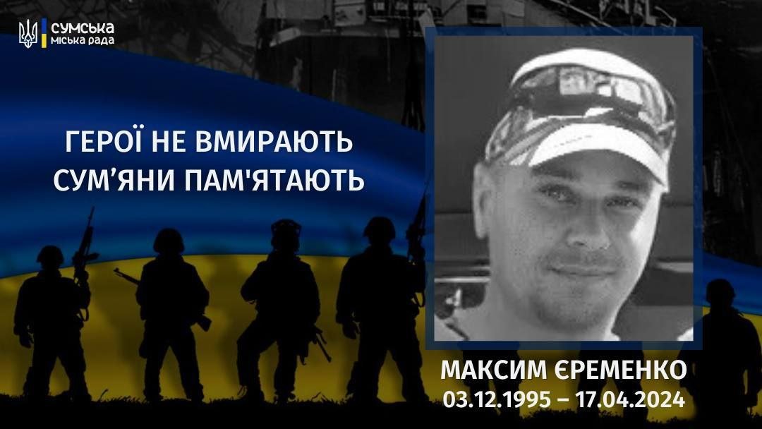Солдат Максим Єременко загинув 17 квітня 2024 року під час виконання бойового завдання в Луганській області.